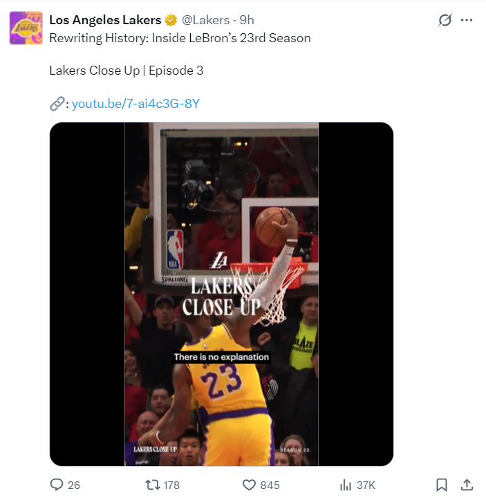 湖人官方还制作了勒布朗自33岁加盟这支球队开始的一些精彩集锦来祝贺老詹41岁生日。